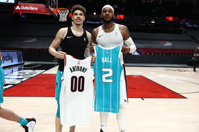 Carmelo Lamelo Ball Swap Jerseys After Nearly Combining For 60 Points